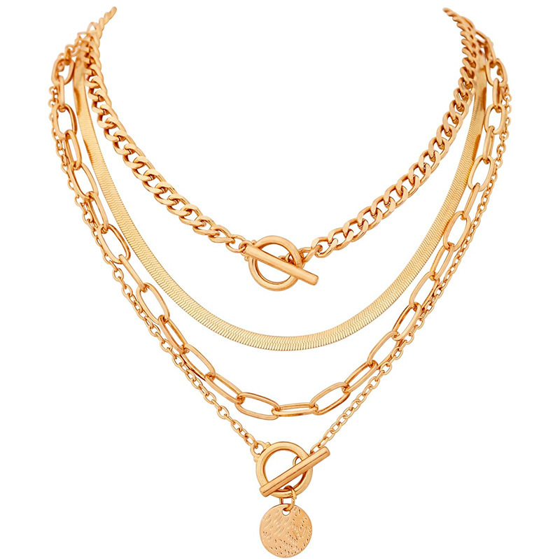 クロスボーダー女性ゴールドカラー多層ネックレスセット、ヴィンテージ分厚いキューバチェーンコインメダルペンダントネックレス