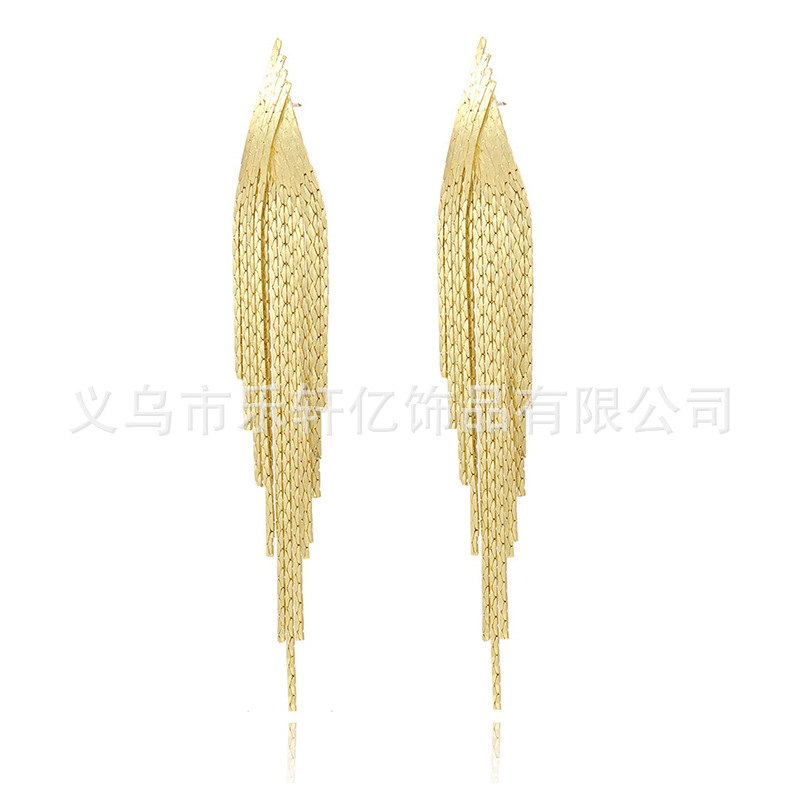 クロスボーダー女性ロングタッセルペンダントイヤリングゴールドカラーパンクファッションメタルチェーンイヤリングウェディングブライドメイドジュエリー