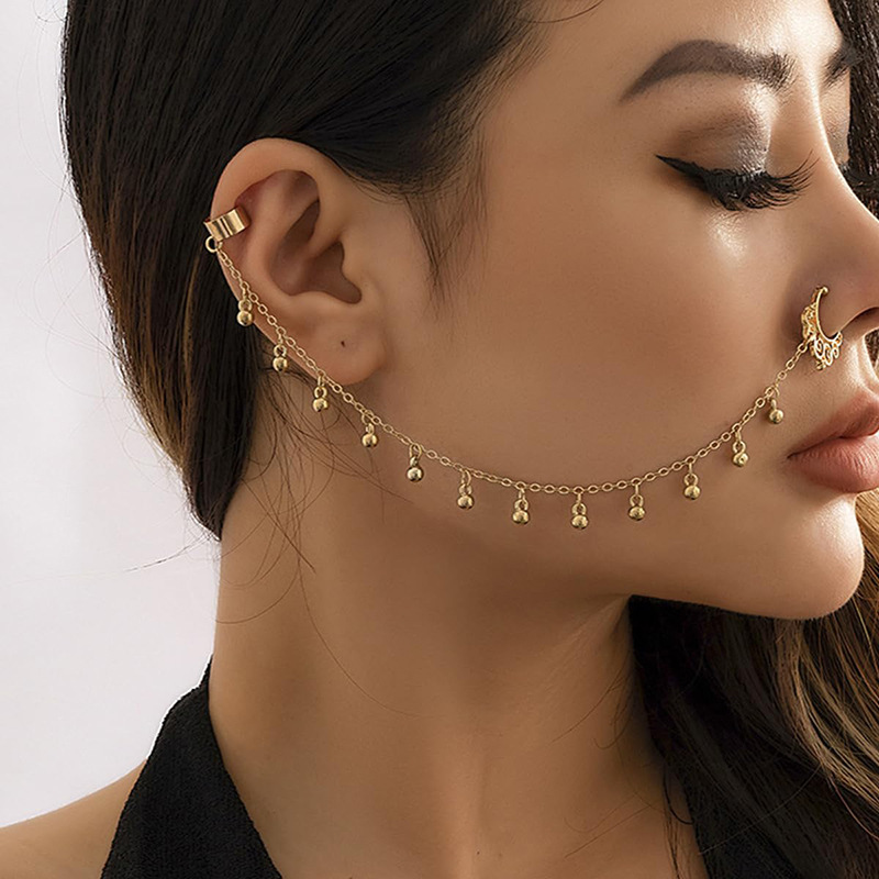 クロスボーダーパンクパールタッセルビーズノーズリングチェーン耳耳チェーン偽鼻中隔リング鼻リングペンダントチェーン女性用
