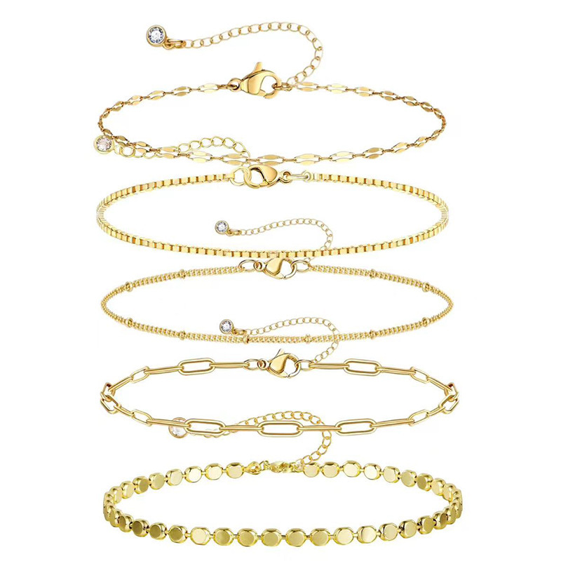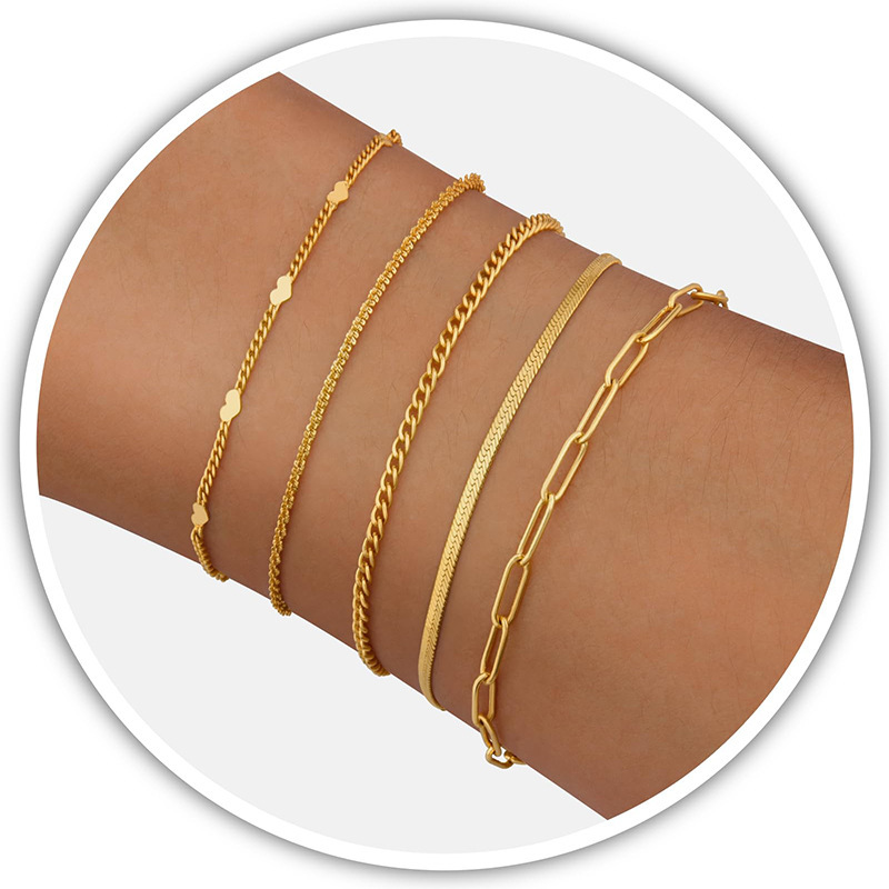 クロスボーダーレディースブレスレットガールズゴールドブレスレット絶妙なペーパークリップヘリンボーンブレスレットレイヤードロープチェーンブレスレットセット