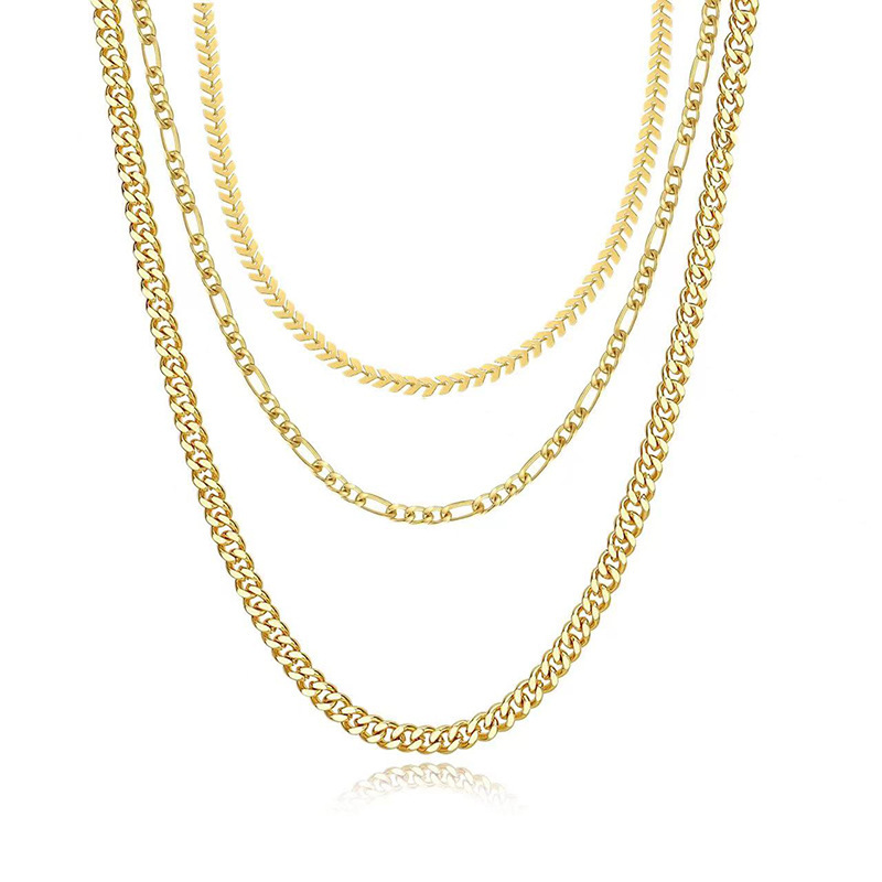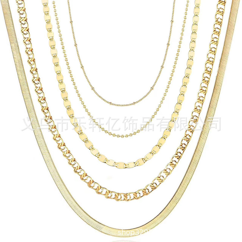 クロスボーダーレディースレイヤードネックレスホワイトゴールド多層分離厚いキューバチェーンネックレスレイヤード厚い絶妙なチェーンネックレス