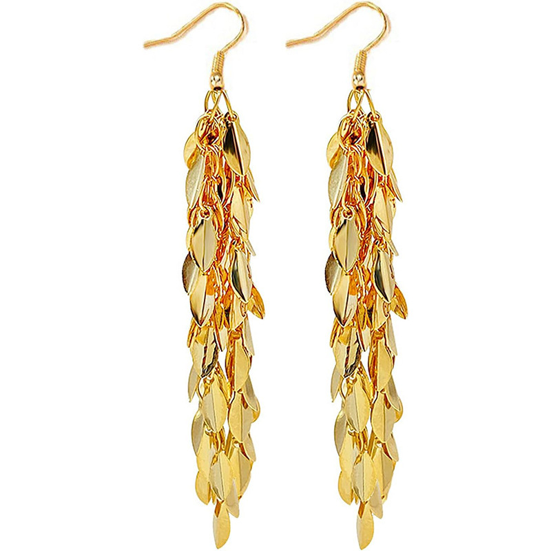 クロスボーダーロングリーフダングルイヤリング、エレガントなゴールドメッキペンダントリニアイヤリング、ブライダルフォーマルダングルイヤリング用