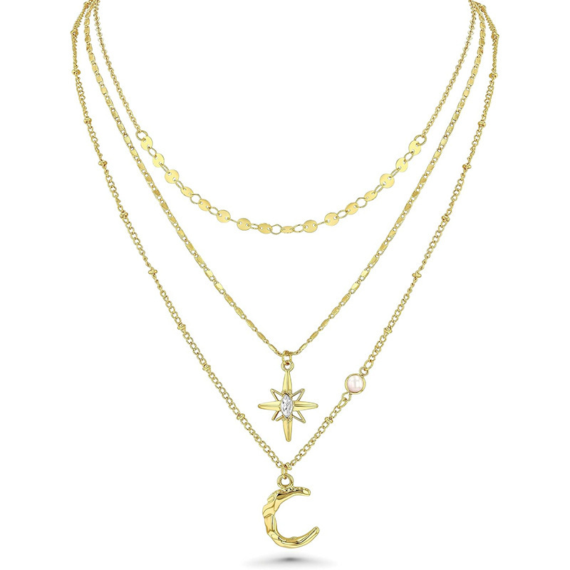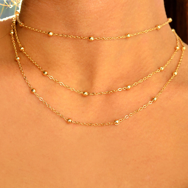 クロスボーダー女性多層ゴールドカラーチョーカーパールペンダントネックレススタッカブルスタッカブル多層繊細なゴールドネックレス