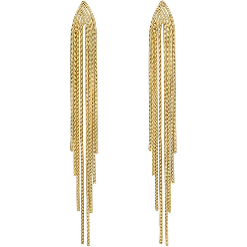 クロスボーダーレディースロングタッセルイヤリングゴールドイヤリングメタルチェーンゴールドパーソナリティイヤリングパンクイヤリング