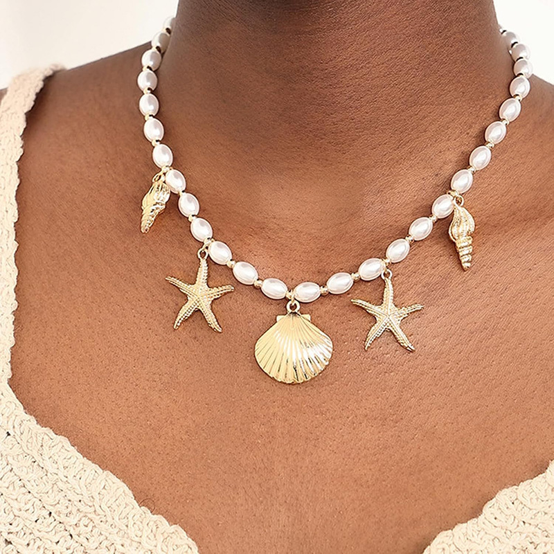 クロスボーダーコンク DIY 手作りパールビーズネックレスセットレディースゴールドペンダントイヤリングビーチネックレス
