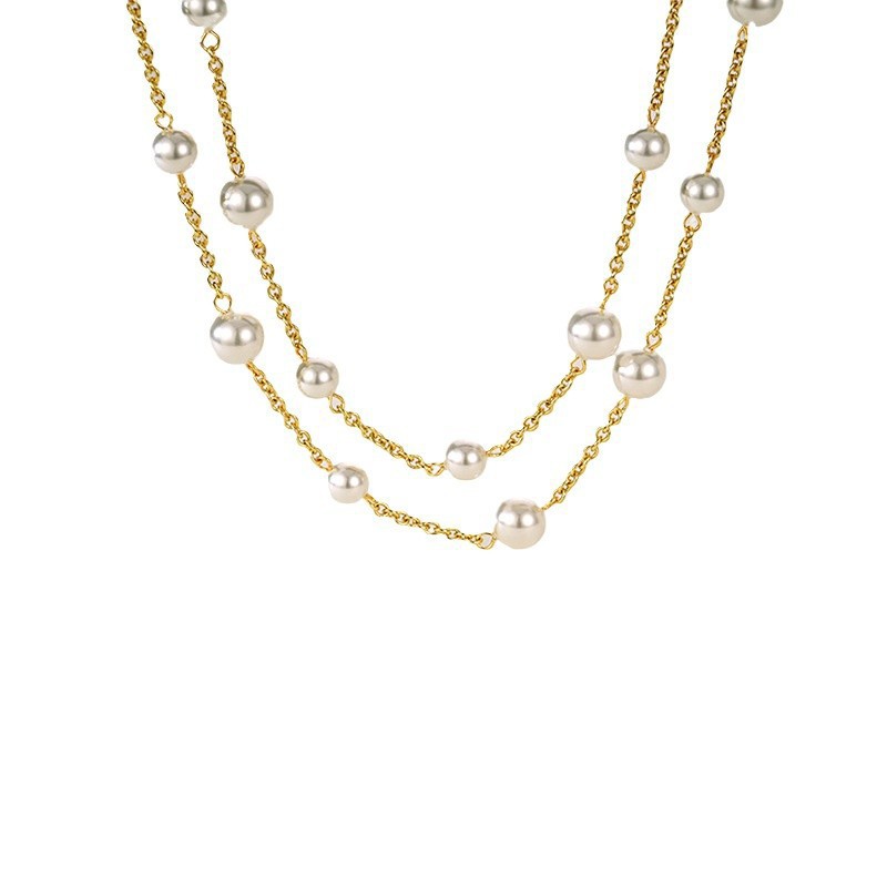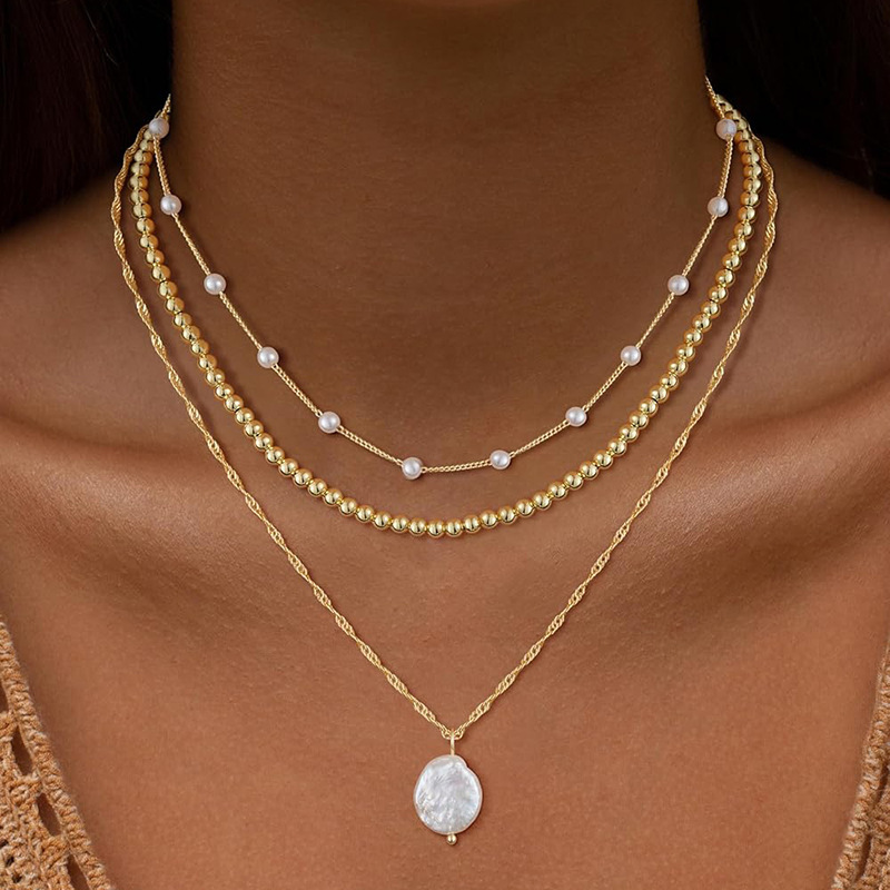 Amazon 新製品高光沢模造真珠ネックレス 14K ゴールドメッキ層状鎖骨チェーン点滅チェーンビーズフレンチネックレス