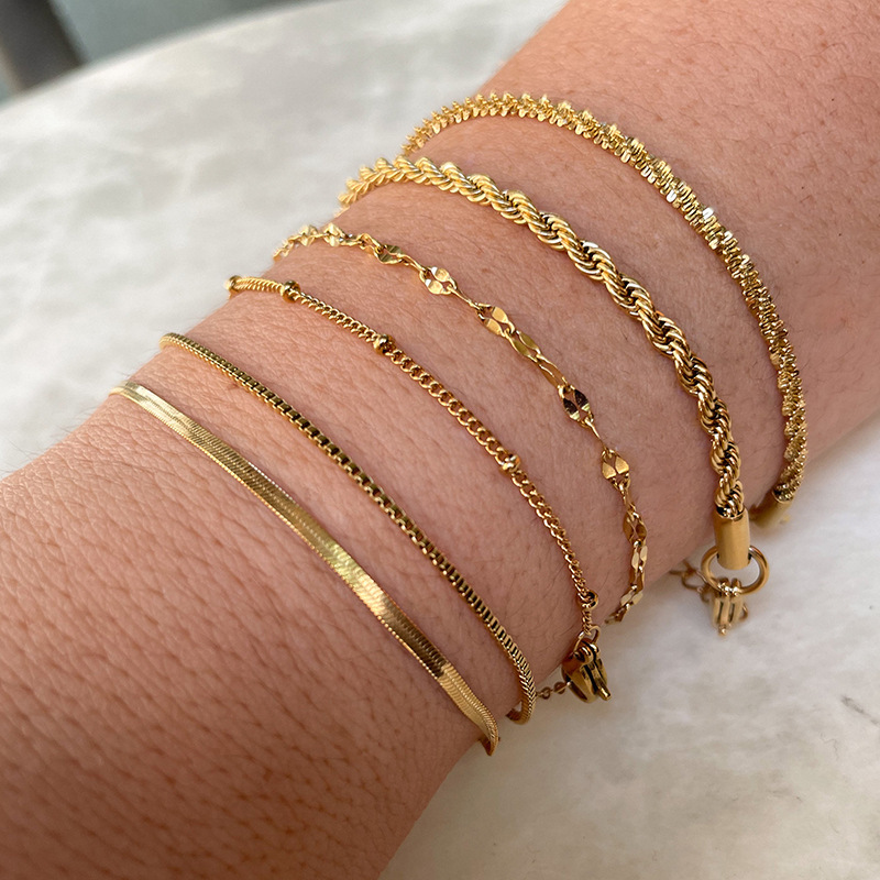 クロスボーダーレディース18k真 � � ゴールドメッキブレスレットステンレスハート形/ロープ/フィガロ/スキューバチェーンブレスレットセット