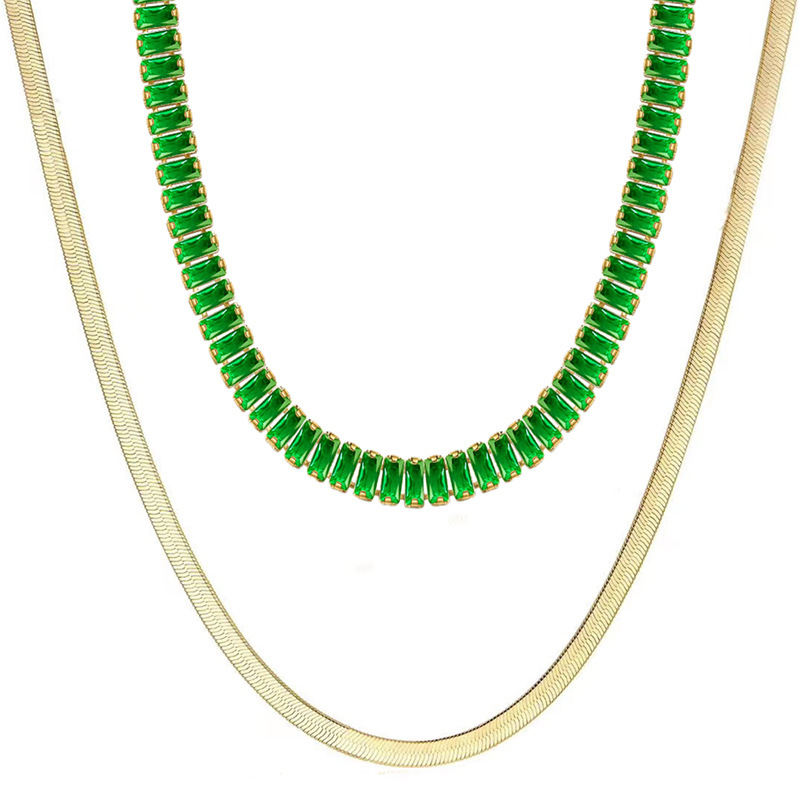 アマゾン14K金メッキ抑制クリップボックス球珠蛇人字とフィガロ鎖調節可能ネックレス