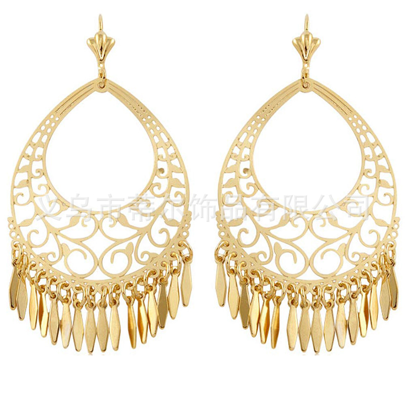 国境を越えた欧米の18k金メッキ金糸の透かし彫り吊り灯式シャンデリアイヤリング女性の美しいイヤリング