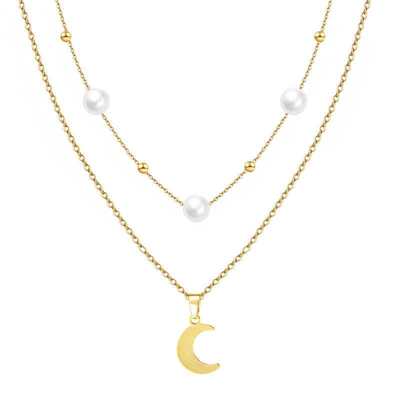 国境を越えた女性真珠ネックレス14k金メッキ2層の洗練された真珠項目半月形真珠ペンダントネックレス