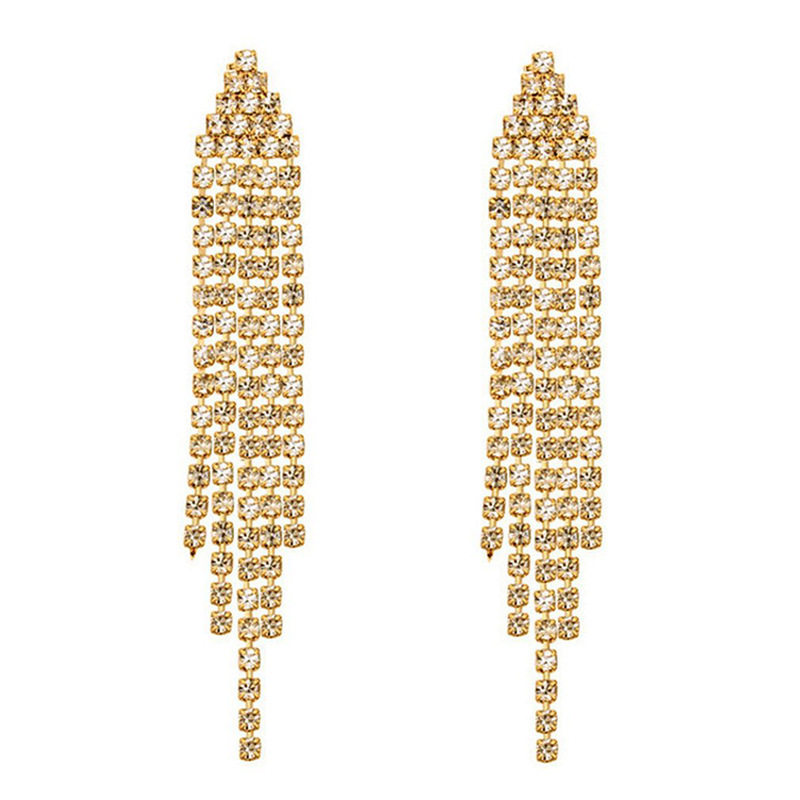 クロスボーダー14kゴールド/シルバーシャンデリアタッセルリニア吊りイヤリングパーティージュエリー透明オーストリアクリスタルイヤリング