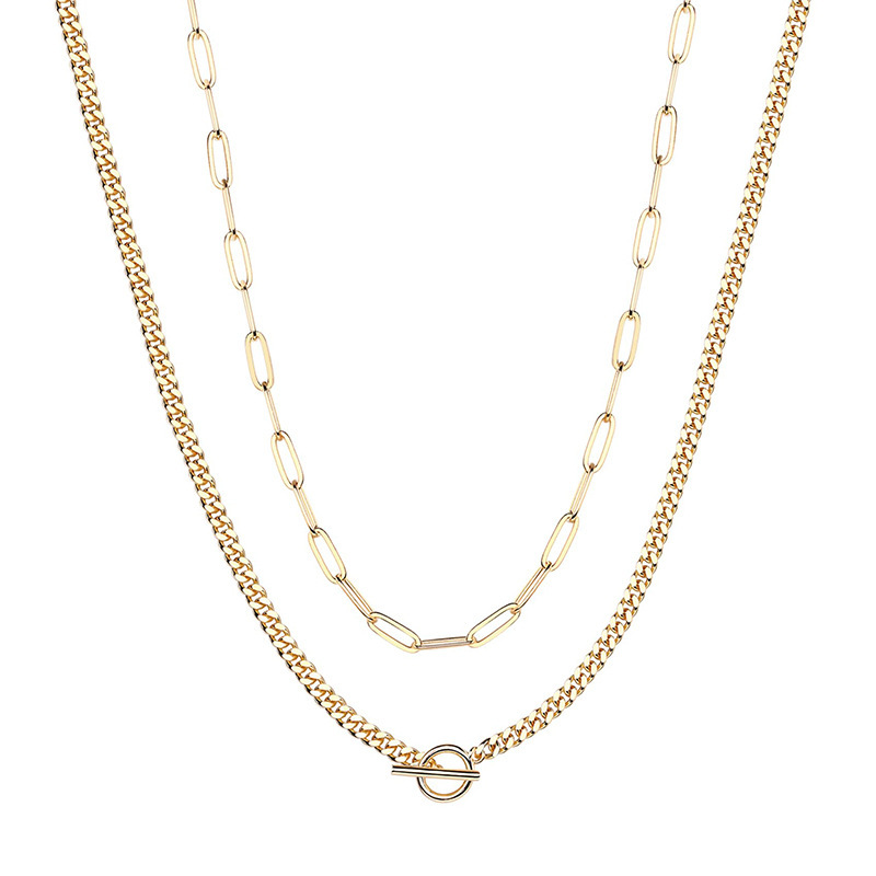 クロスボーダー女性の絶妙なゴールドネックレススタック、ファッションレイヤードゴールドネックレス14Kゴールドフィルドネックレスセット