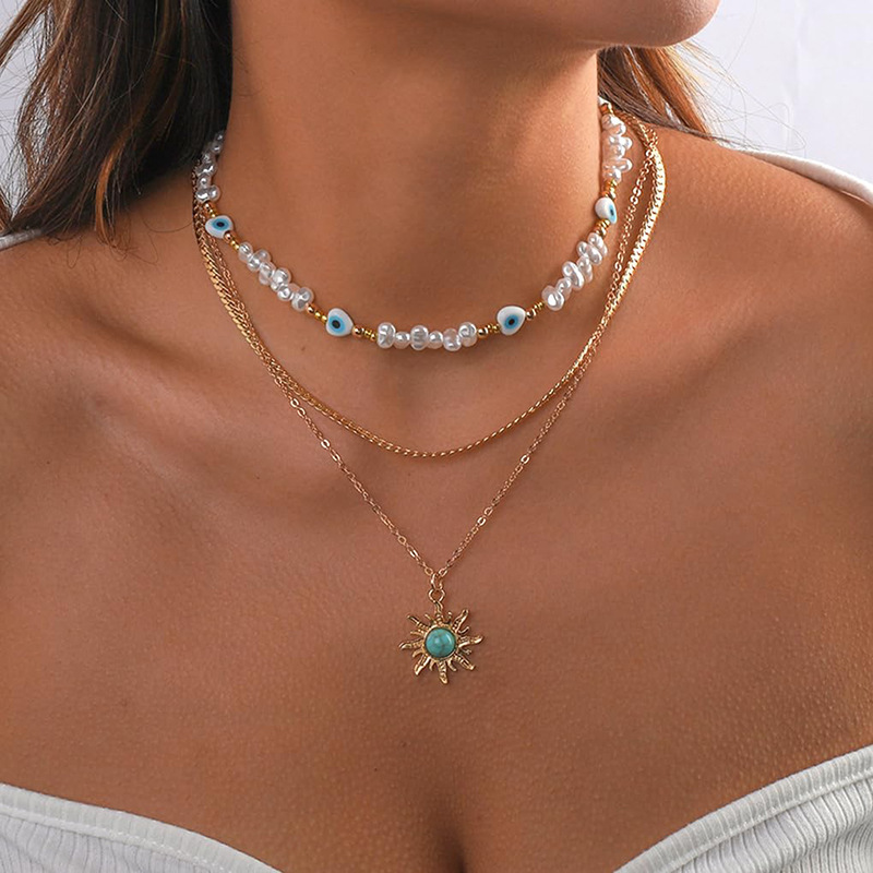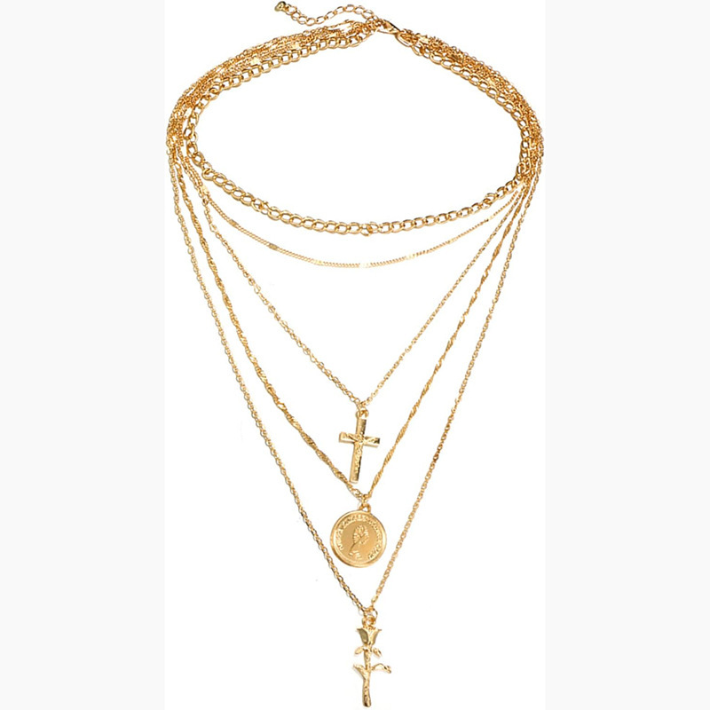 クロスボーダー女性多層ゴールド積み重ね可能な繊細なネックレスファッションゴールドメッキペンダントネックレス女性のための