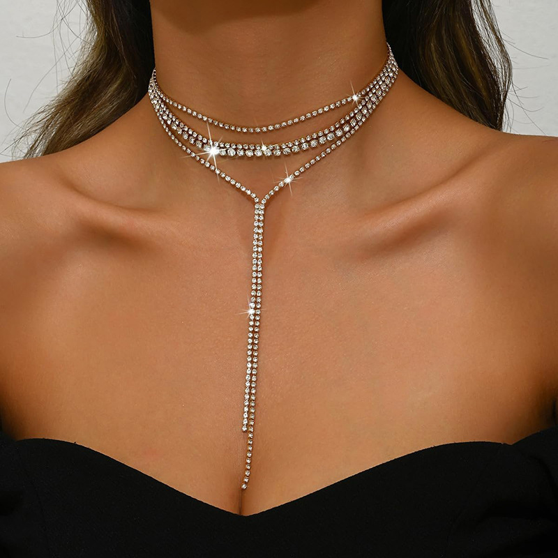 クロスボーダー女性ラインストーンネックレスダイヤモンドチョーカーフォーマルブライダルウエディングファッションコスチュームジュエリーネックレス