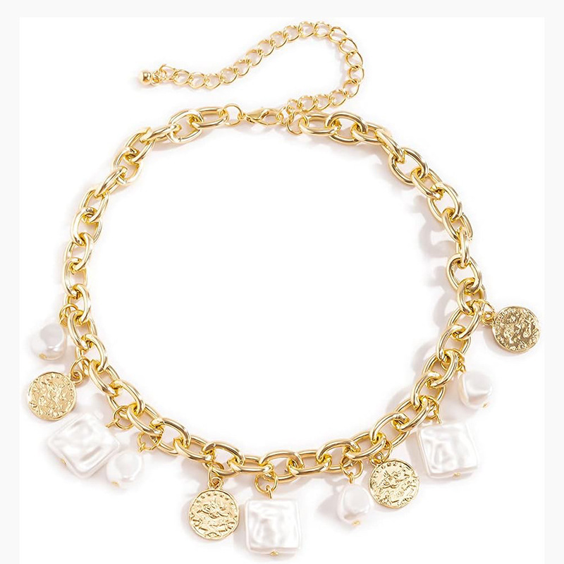 クロスボーダーパンクキューバチェーンチョーカーネックレス不規則なパールコインタッセル彫刻コインペンダントネックレス