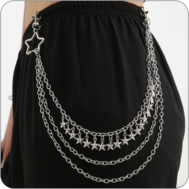 ヨーロッパとアメリカのクロスボーダーメンズとレディースのヒップホップパンツチェーン三層五芒星チェーンファッショナブルで多用途なボディチェーン