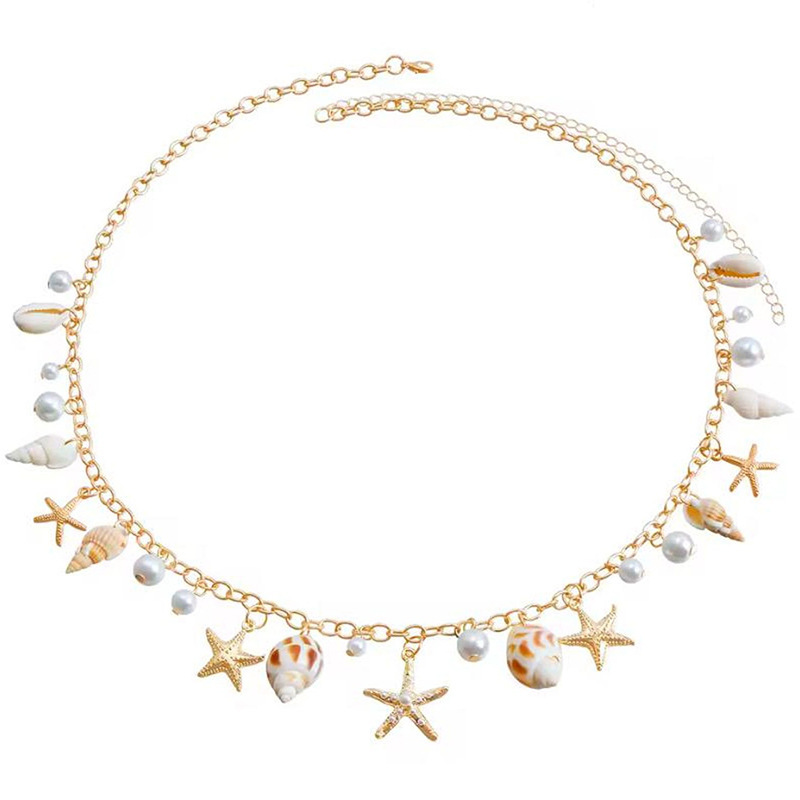 クロスボーダー新しいボヘミアンサマービーチシェルウエストチェーン模造真珠ヒトデと巻貝ボディチェーン