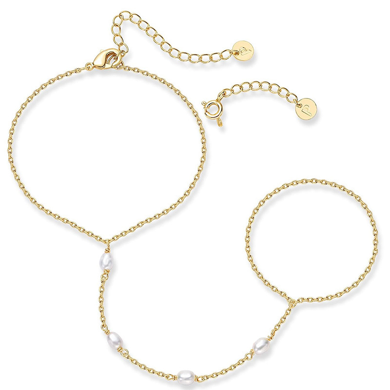 クロスボーダーガールズ 14K ゴールドメッキ淡水パールゴールドブレスレットレディースブレスレット-ファッションリングブレスレットブレスレット