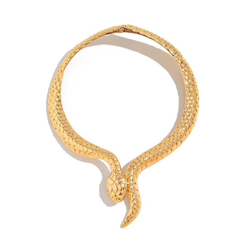 クロスボーダー女性のレトロなメタルスネークラップネックレスパンクスタイル動物首輪鎖骨チェーンネックレス