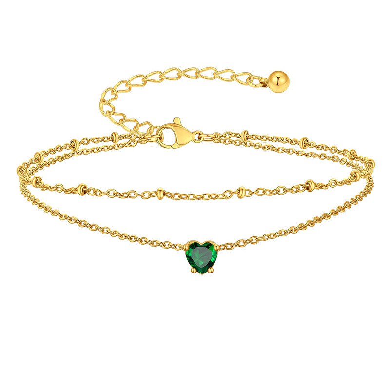 クロスボーダーシンプルなハート誕生石アンクレット多層ビーズアンクレット女性のためのゴールドカラーの宝石色のアンクレット