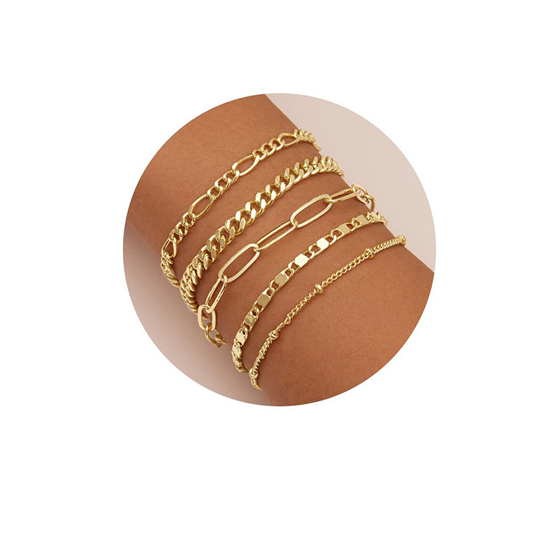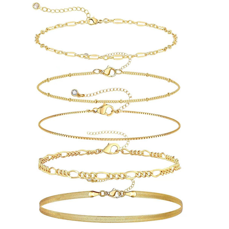 クロスボーダー女性 14 K ゴールドメッキチェーンスタッカブルブレスレットジュエリーギフト女性のための調節可能なブレスレットセット