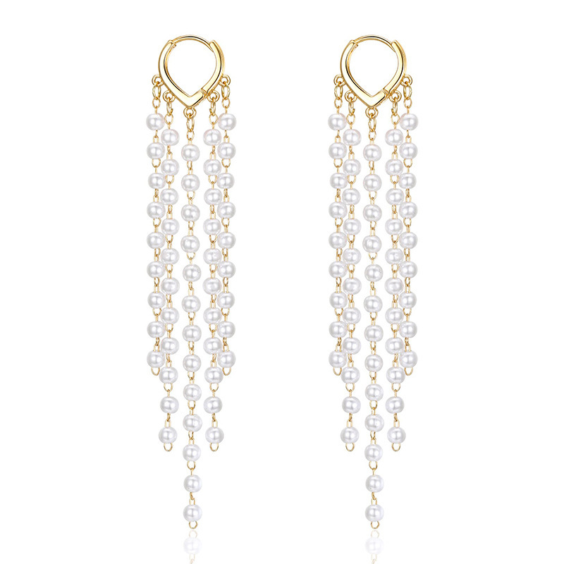 クロスボーダー女性ロングパールイヤリング 14k ゴールドメッキパールペンダントタッセルイヤリングロングパールドロップイヤリング