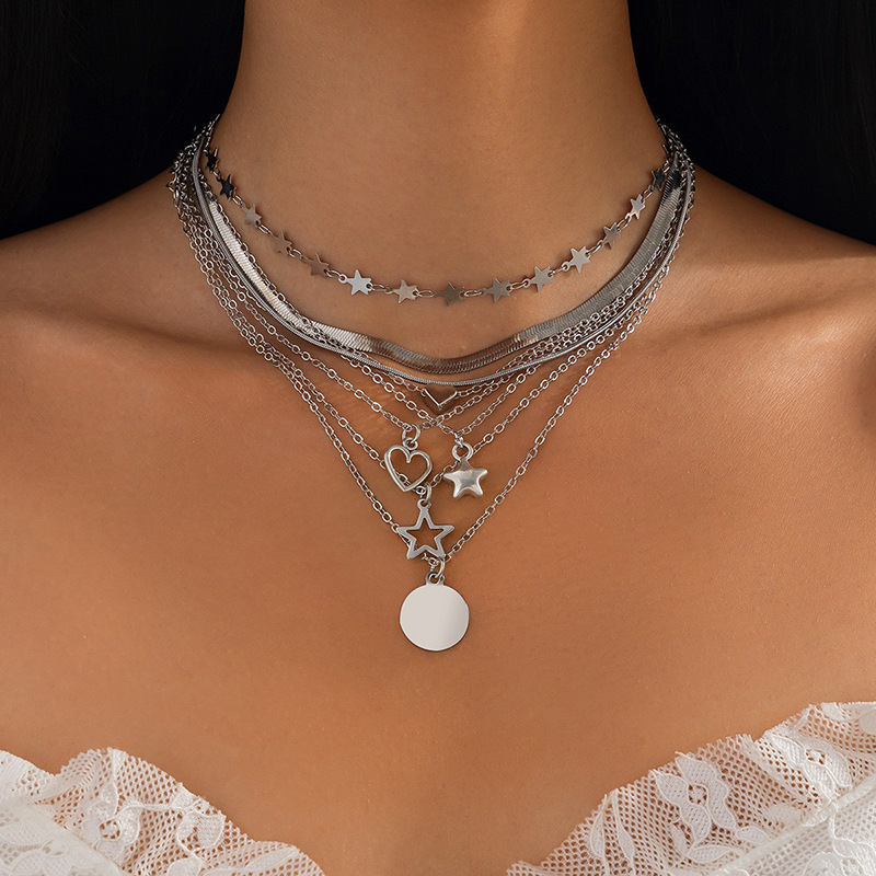 クロスボーダーガールズヨーロッパとアメリカのパーソナライズされたクールなスタイルの積み重ね中空五芒星ラブペンダントネックレスセット