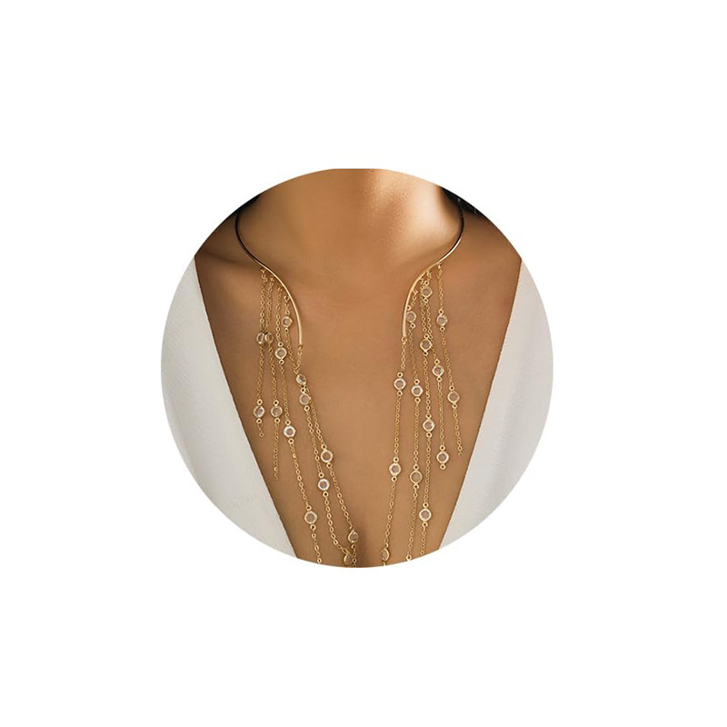 クロスボーダーラインストーンボディチェーンレイヤードボディジュエリーセクシーなブラジャーボディチェーンゴールドカラーボディネックレス