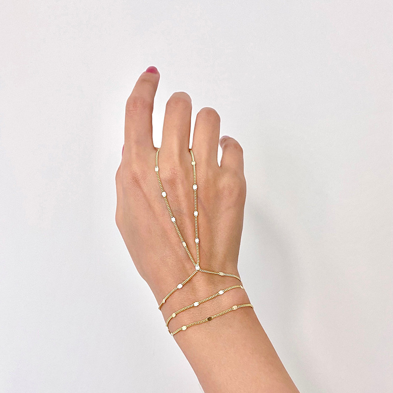 クロスボーダー女性リングブレスレットブレスレットゴールドチェーンブレスレットレイヤードフィンガーリングブレスレットハロウィンパーティージュエリーギフト