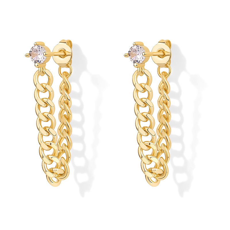 クロスボーダーレディースダブルイヤリングチェーンタッセルピアス耳ゴールドメッキダブルピアスペンダントチェーンイヤリングレディースガールズ