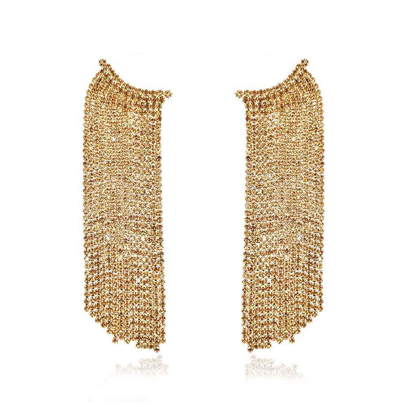 クロスボーダーラインストーンイヤリングぶら下げロングタッセルクリスタルシャンデリアペンダントイヤリング女性女の子用