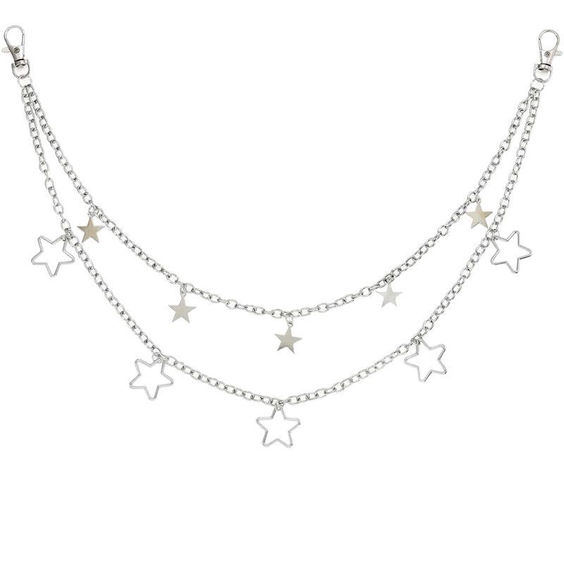 クロスボーダー新人気パンク中空金属五芒星ウエストチェーン男性と女性のレトロスターマルチレイヤーパンツチェーン