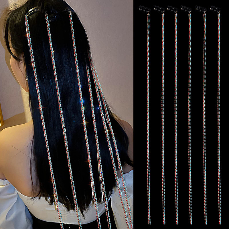 クロスボーダーヘアチェーンシルバークリスタルパンクヘアピン延長編組ヘアピンタッセル光沢のあるロングラインストーン装飾女性用