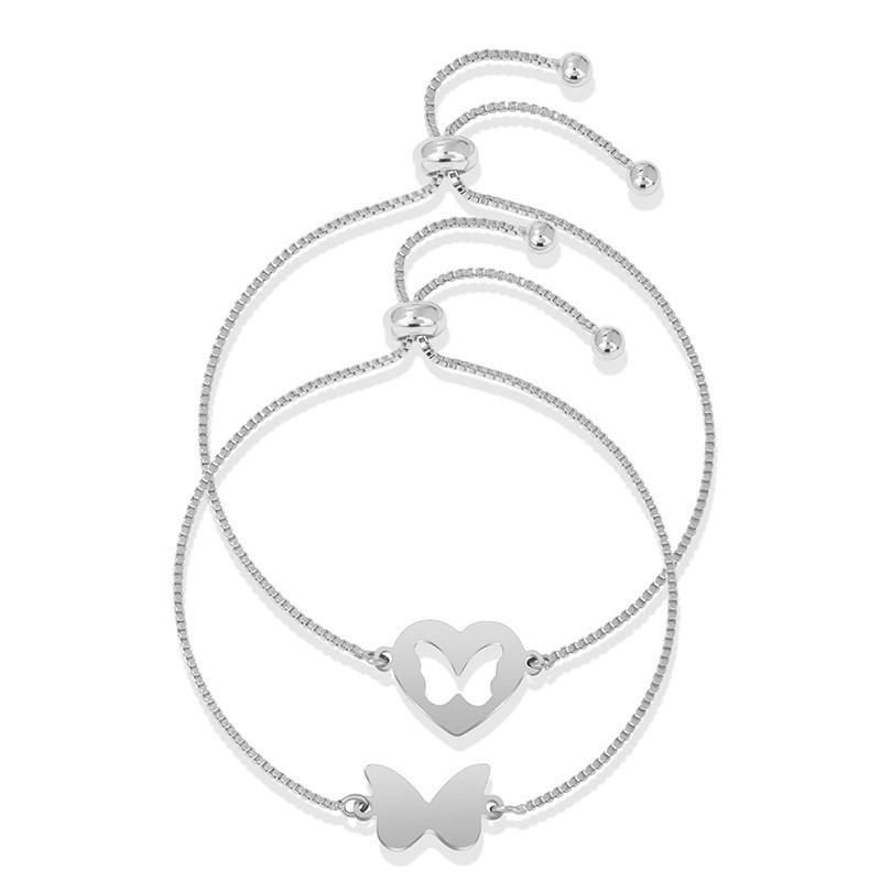 クロスボーダー女性用シルバーメッキゴールドメッキ友情ブレスレット母と娘調節可能なマッチングバタフライチェーンセット女性と女の子用