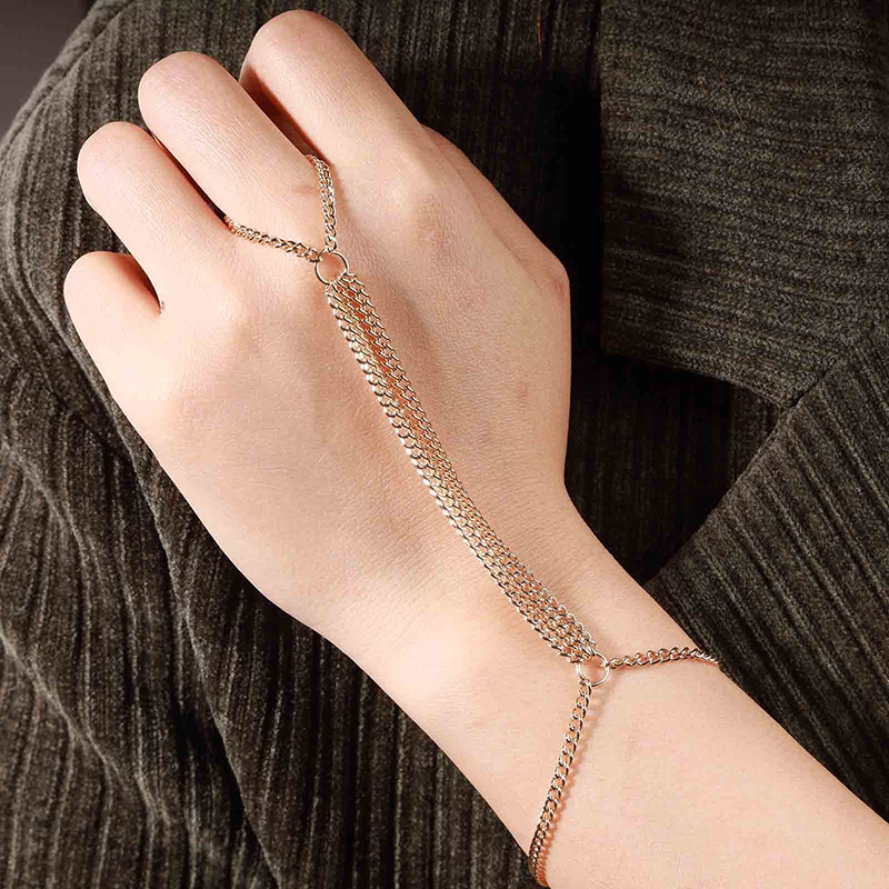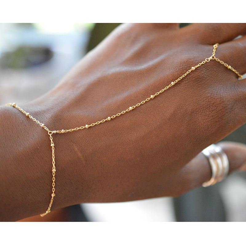 クロスボーダーボヘミアンフィンガーリングブレスレット女性用ゴールドカラーレイヤードブレスレットハンドジュエリー十代の女の子用