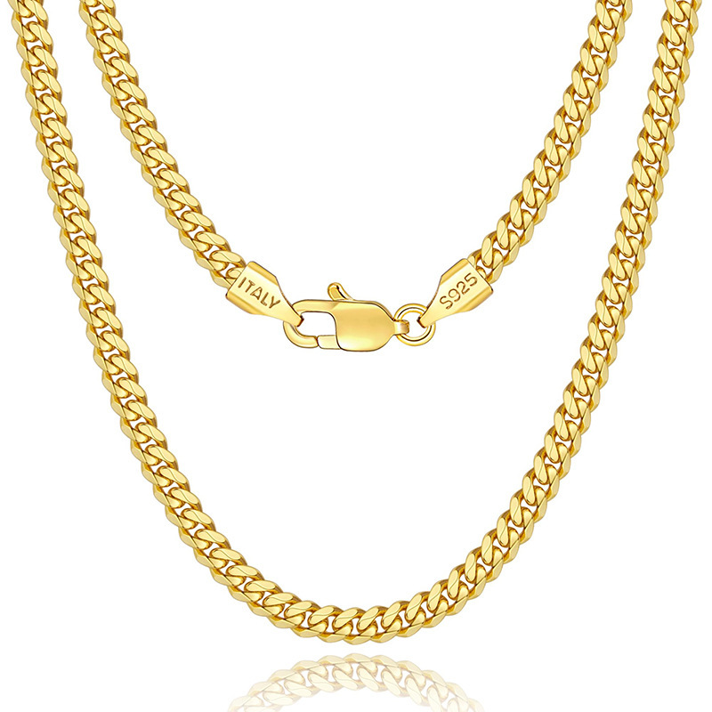 クロスボーダー男性と女性のソリッドゴールドメッキシルバーメッキイタリア製4mmダイヤモンドカットフィガロチェーンネックレス