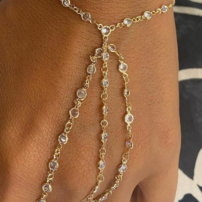 クロスボーダーボヘミアンクリスタルフィンガーリングブレスレットゴールドラインストーンブレスレットゴールド CZ ブレスレットブレスレット