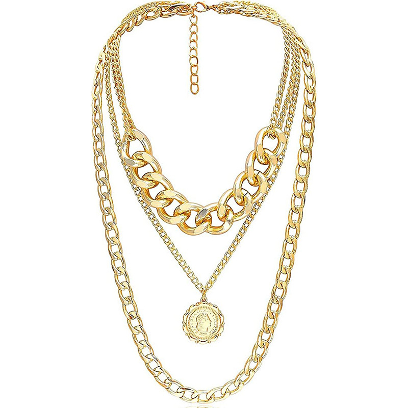 ヨーロッパとアメリカのクロスボーダージュエリー重金属テクスチャクイーンレリーフペンダントネックレスセーターチェーン女性のシンプルな多層ネックレス