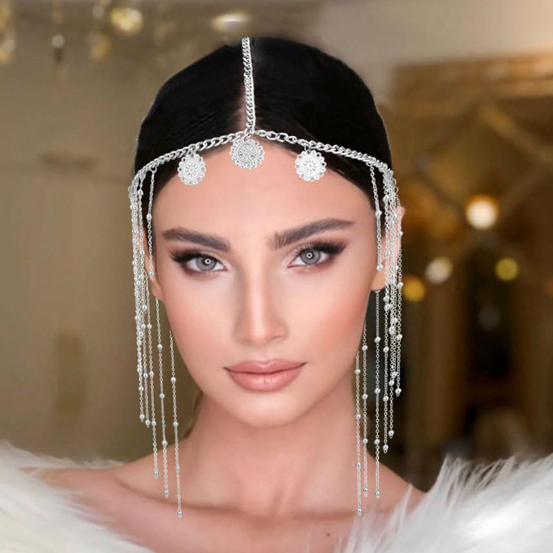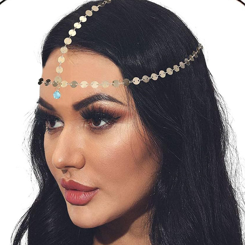 クロスボーダースパンコールヘッドチェーンゴールドヘッドピースチェーンジュエリー小さなコインヘアチェーンホリデーハロウィンヘアアクセサリー女性用