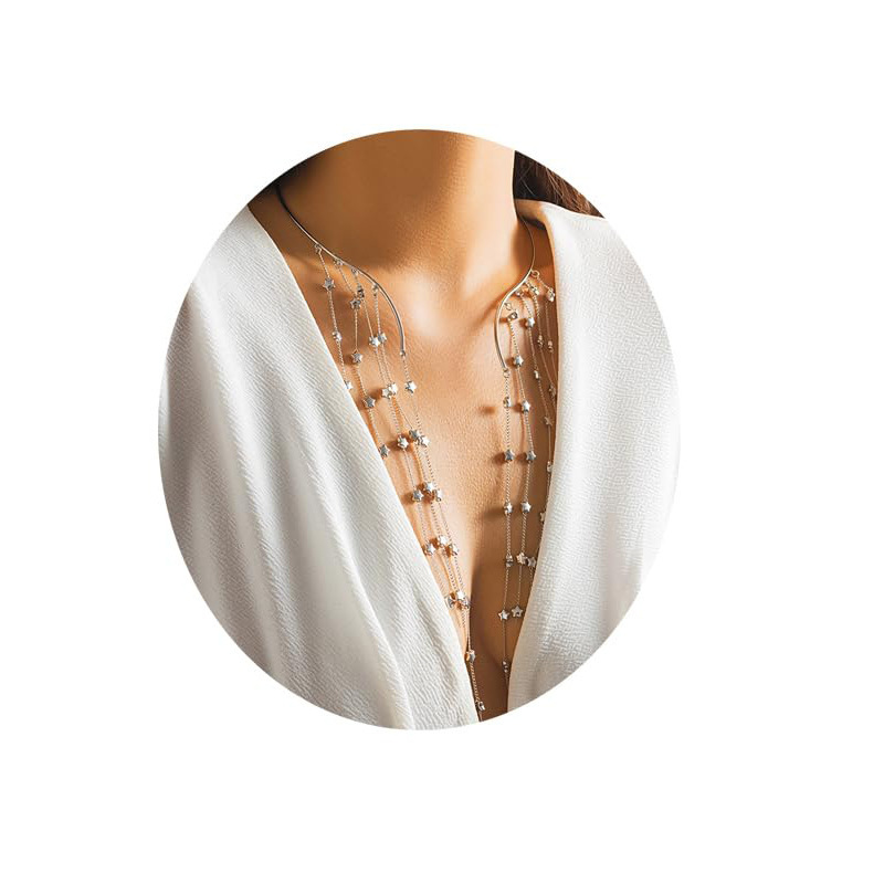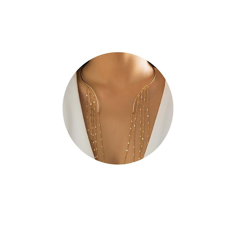クロスボーダーメタルスパンコールタッセル鎖骨チェーンネックレスサマービーチネックパーソナリティチョーカーボディチェーンネックレス女性用