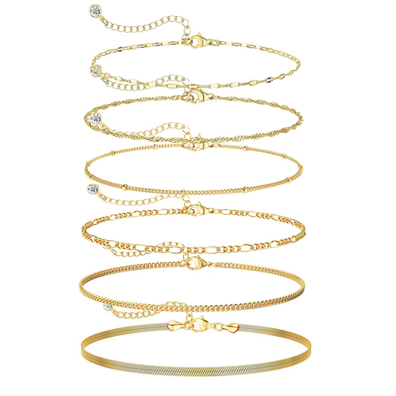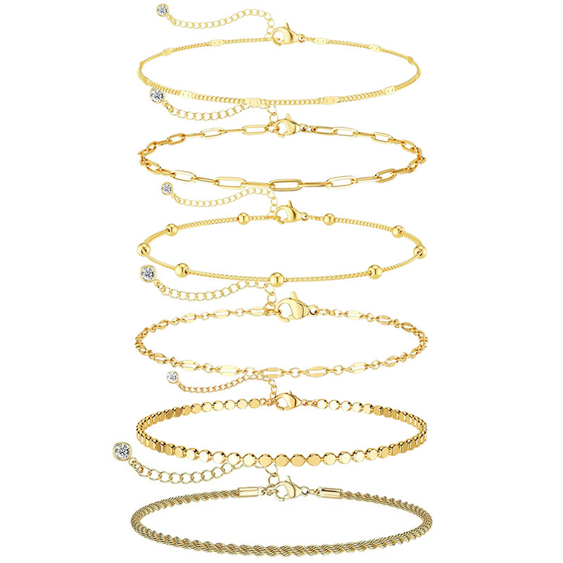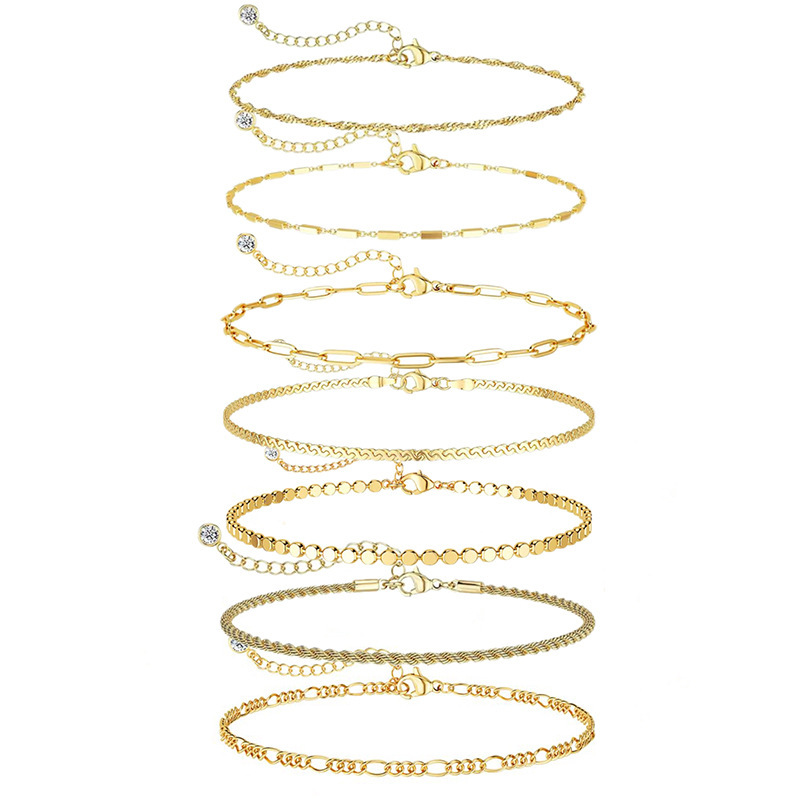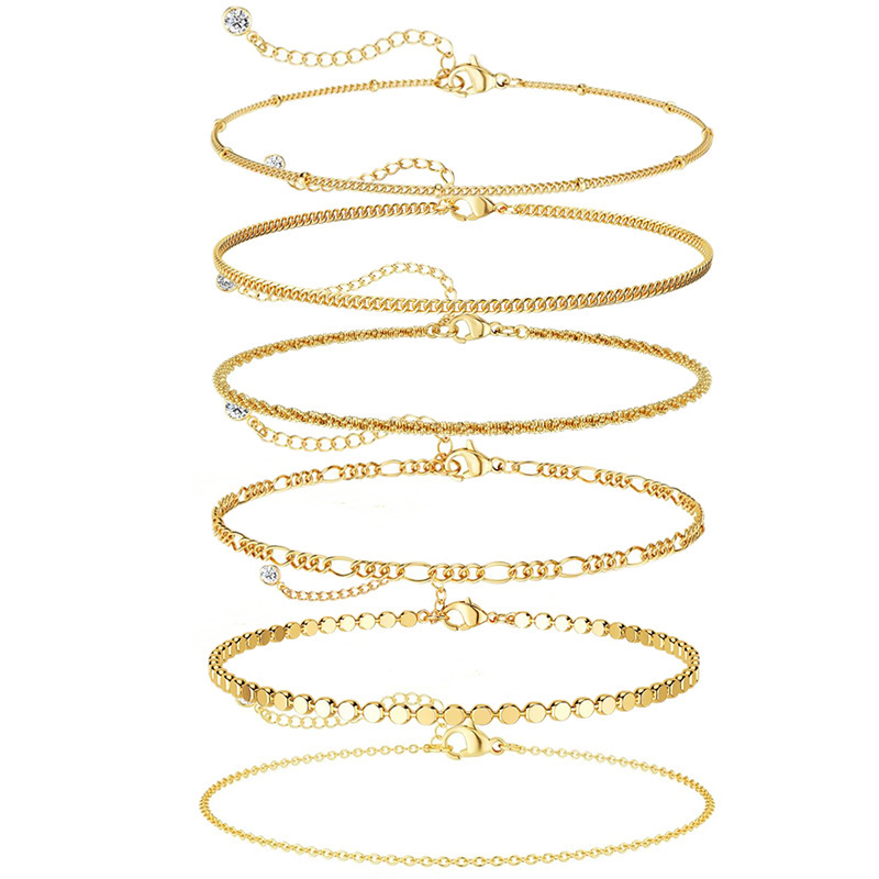 クロスボーダー女性ゴールドブレスレット-14Kゴールドメッキスタッカブルチェーン多層シルバーブレスレットスタッキングジュエリーブレスレットセット