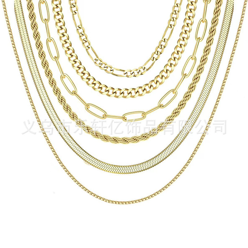 クロスボーダー女性ゴールドカラーレイヤードセットネックレス、絶妙な14Kゴールドメッキレイヤードキュービックジルコニアペンダントネックレス