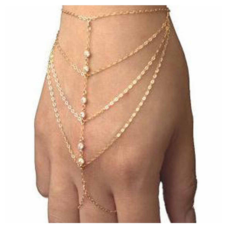 クロスボーダーレディースボヘミアンリングブレスレットゴールドラインストーンチェーンブレスレットレトロレイヤードタッセルブレスレット