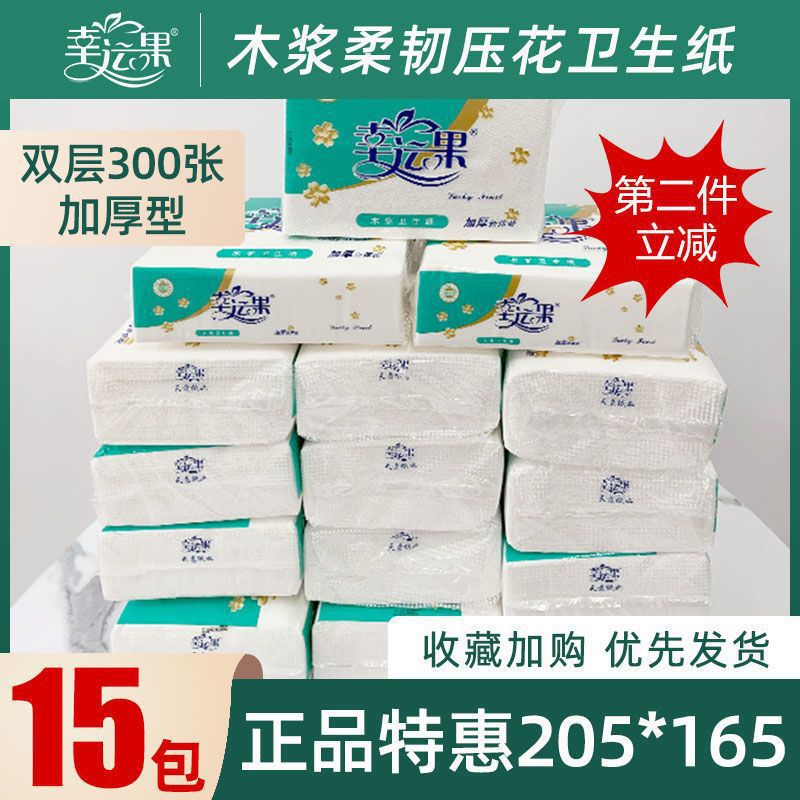 幸運果エンボス平板トイレットペーパー15包/5包木材パルプトイレットペーパー卸売り二重300枚家庭用実恵装