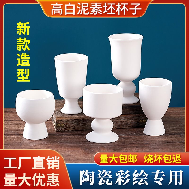 無地のカップセラミック高白粘土無地の脚付きカップ釉下色陶器陶器バー diy 手描き白胚カップ