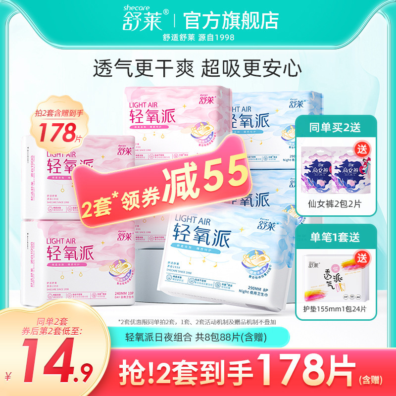 舒莱生理用ナプキン国産品軽酸素綿日用夜用超熟睡薄タイプ通気性叔母タオル女性セットフルケース
