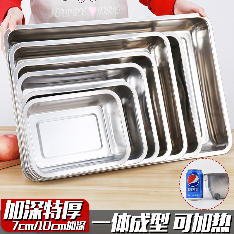 ステンレス角皿特厚深トレイ長方形業務用キッチン皿家庭用料理皿焼き魚皿蒸し皿