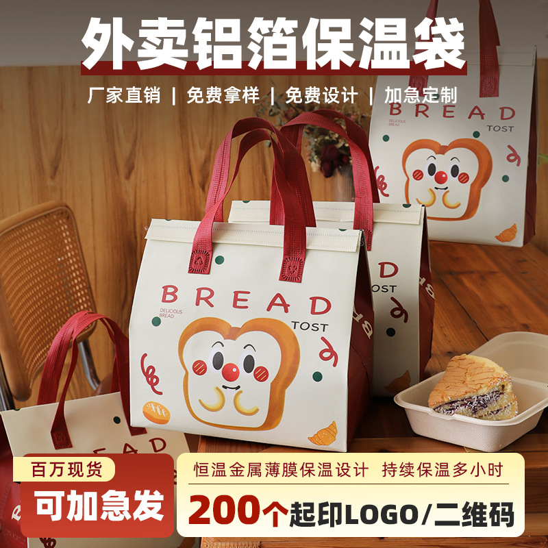 使い捨てテイクアウト断熱袋包装肥厚ハンドバッグ不織布アルミ箔ミルクティーケーキ包装袋カスタマイズ