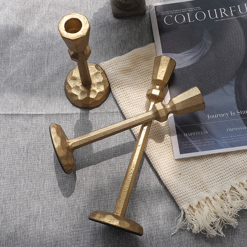 フレンチシンプルで重厚な鋳鉄の金色の燭台に飾られています。