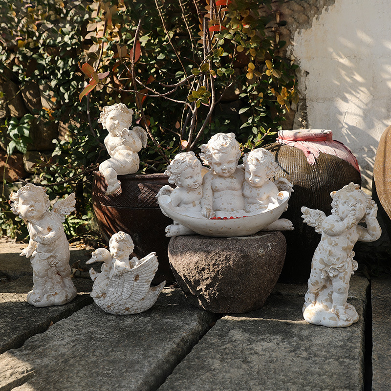 アメリカの田舎のレトロな天使がリビングルームの寝室のデスクトップを飾って古い彫刻庭園の景観の花園のベランダの装飾をします。